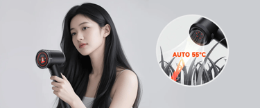 Intelligently adjusts drying power: reducing power when the dryer is closer to your head and increasing it when farther away.
